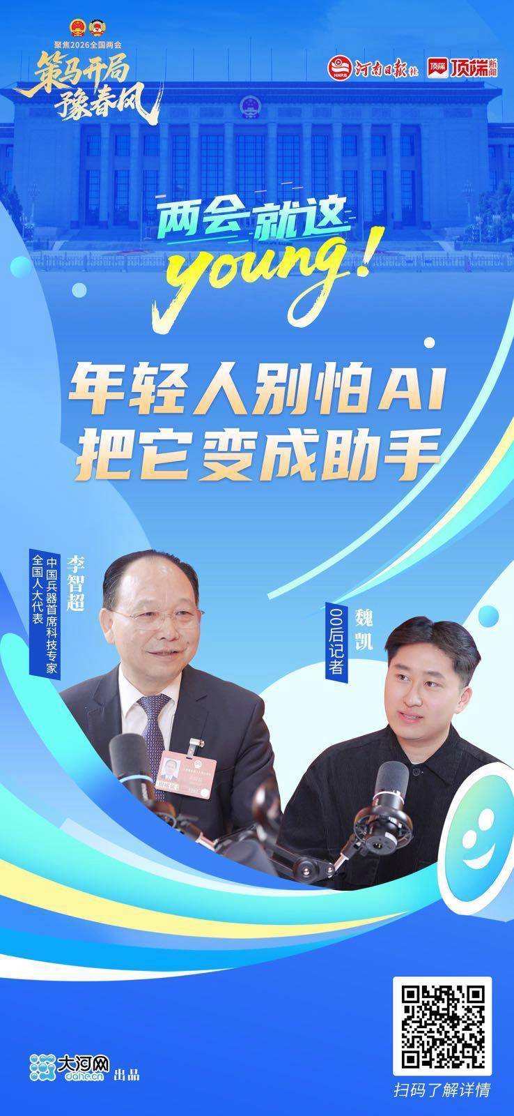 全国人大代表、中国兵器首席科技专家李智超。AI时代已经到来,李智超鼓励年轻人主动拥抱AI而非恐惧AI。他建议:一要学习AI原理,掌握工具;二要保持独立思考,先自己想再用AI验证;三要尽早建立自己的AI助手,在新时代中健康成长。(谭敏/文 范昭 杨鑫阳 魏凯/视频)